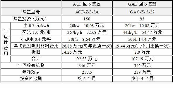4、投資比較 由于ACF吸附回收裝置主體設(shè)備主要由不銹鋼制造,而GAC回收裝置主體設(shè)備主要由碳鋼制造,并且ACF的價格遠(yuǎn)高于GAC,因此GAC回收裝置的投資一般為ACF回收裝置投資的1/2到2/3